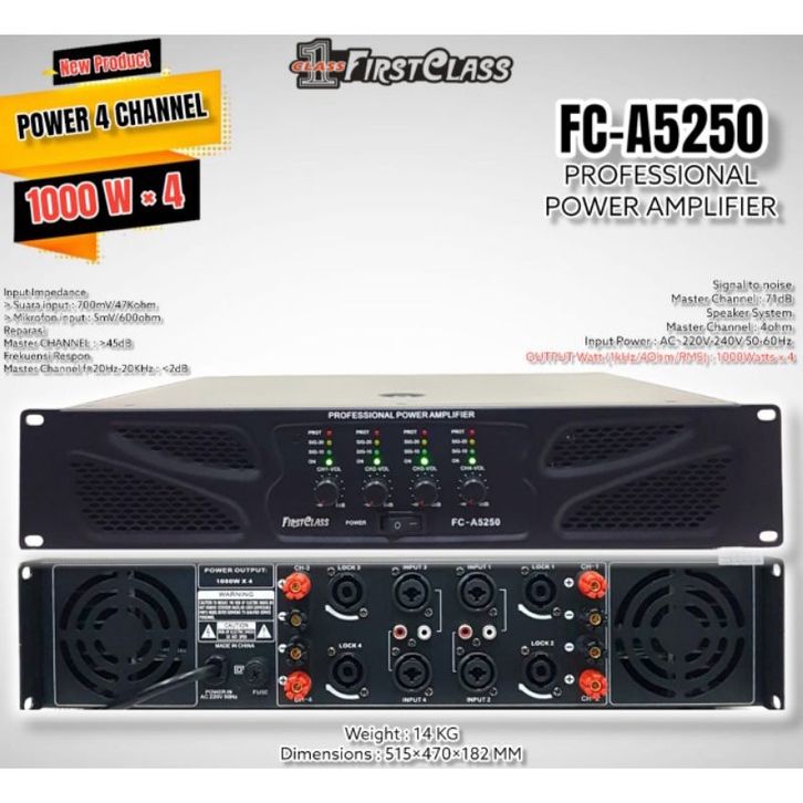 POWER AMPLIFIER FIRSTCLASS FC A5250 4 CHANNEL 1000 WATT