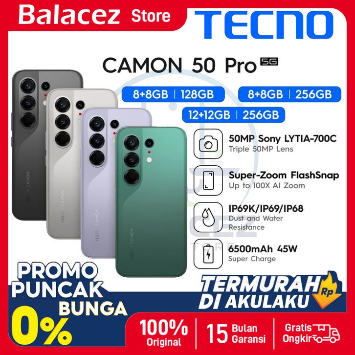 TECNO CAMON 50 PRO 5G 12/256GB & CAMON 50 12/256GB | CAMON 40 Pro 8/256GB | SPARK Go 3 4/128GB - Garansi Resmi 1 Tahun