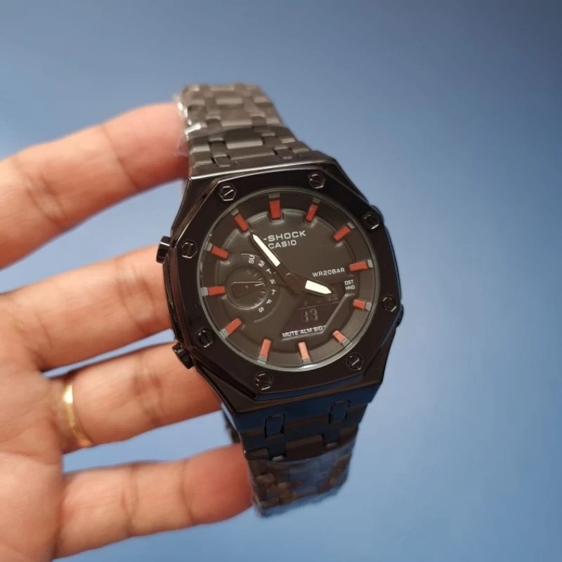 JAM TANGAN WANITA CASIO G-SHOCK GM-2100 BLACK DIAL RED STAINLESS STEEL - FREE ONGKIR - GARANSI 1 TAHUN