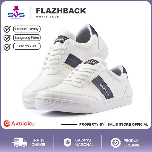 FLAZHBACK WHITE BLUE | Salisstore x Flazhback | Sepatu Sneakers Pria Putih Casual Kulit ORIGINAL
