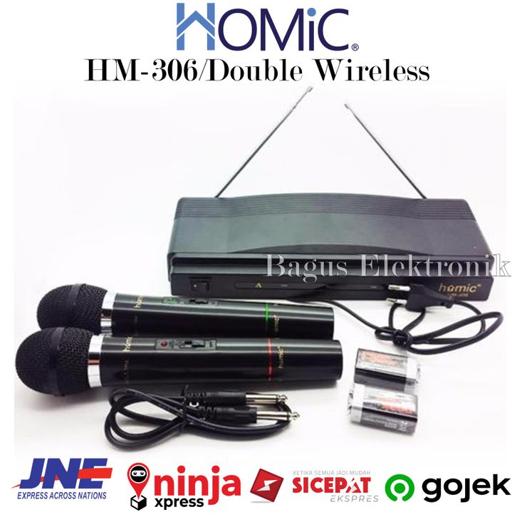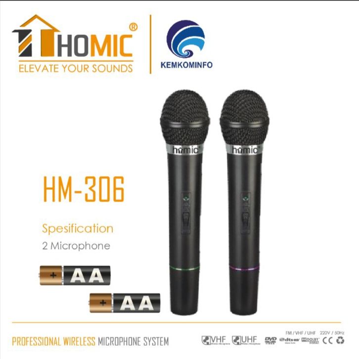 Mic Wireless Homic HM-306 Microphone Double Mik Wireless / Mic Microphone Double Wireless HOMIC HM 306 Siap Paka / HOMIC
