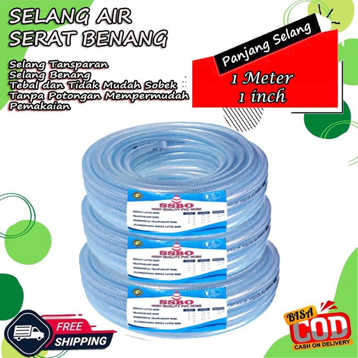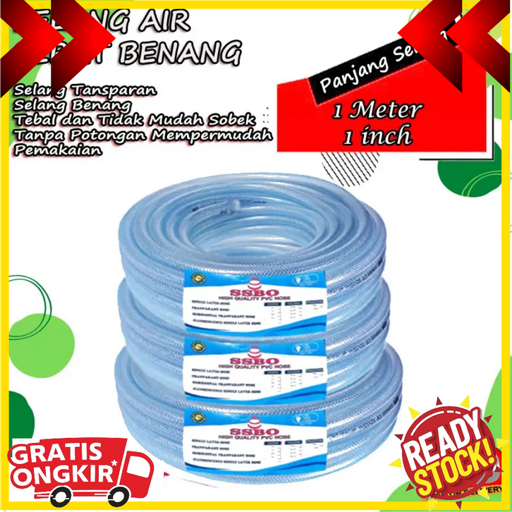Selang Air 50 Meter 1 Roll / Selang Air 1/2 5/8 3/4 Inch / Selang Air Serat Benang Tebal Transparan