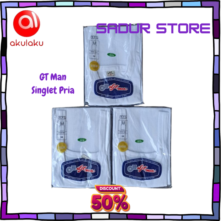 GT Man 3 Pcs Singlet Pria, Kaos Dalam Pria Bersalur Warna Putih.