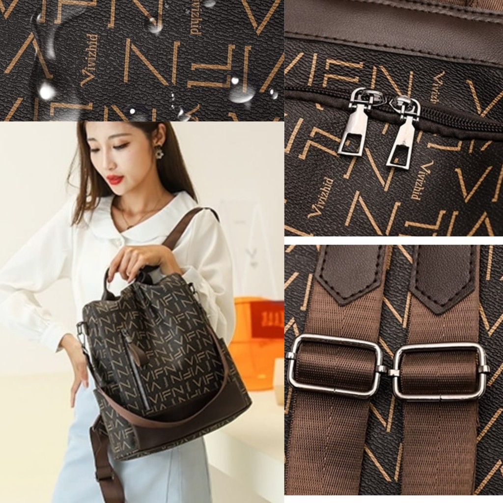 TAS RANSEL KULIT WANITA ANTI AIR IMPORT PREMIUM COKLAT CARMEN TA419B7 BACKPACK PUNGGUNG SEKOLAH KERJA KULIAH BRANDED