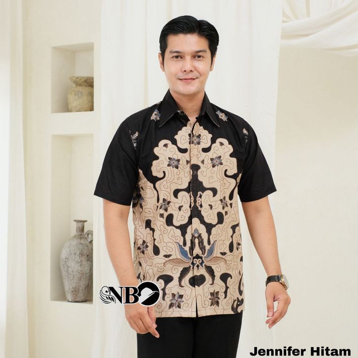 Kemeja Batik Pria Baju Kerja Motif Sekarjagad BAC77 Hem Batikpria Murah M L XL XXL Batik Pria Soga Terbaru Batik Hitam