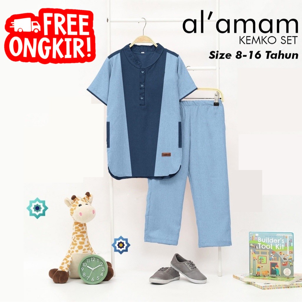 baju setelan Koko anak laki laki al'amam lengan pendek usia 8-16 tahun