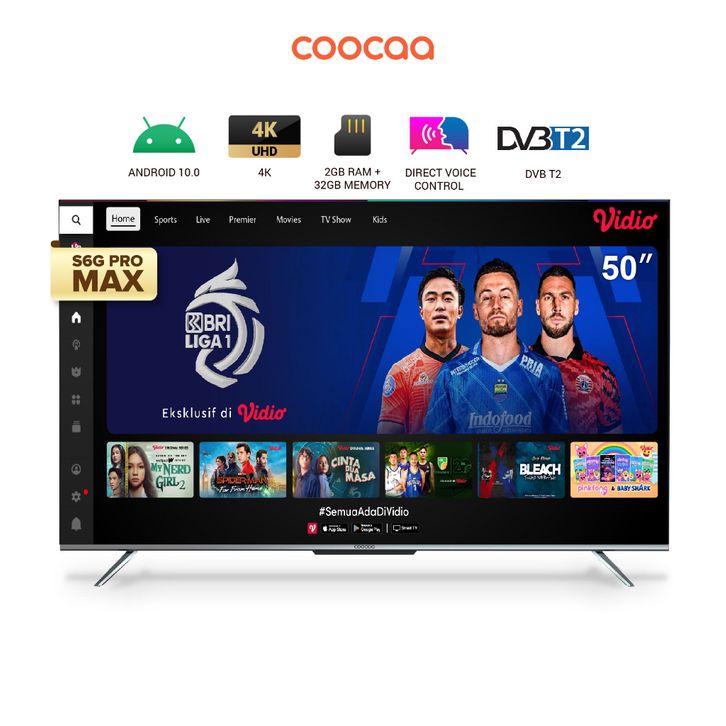 COOCAA 50 INCH SMART TV DIGITAL TV 4K UHD NETFLIX/YOUTUBE GOOGLE ASSISTANT RAM 2GB MEMORI 32GB DOLBY AUDIO MIRRORING HDR