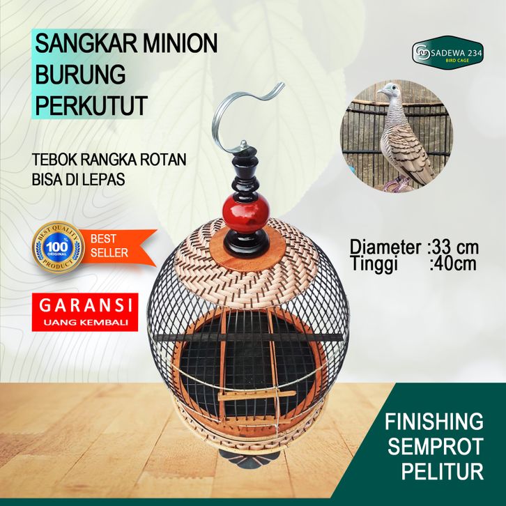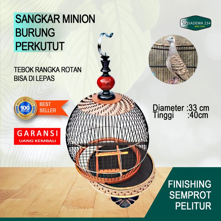 Sangkar burung perkutut minion rotan anyaman sintetis