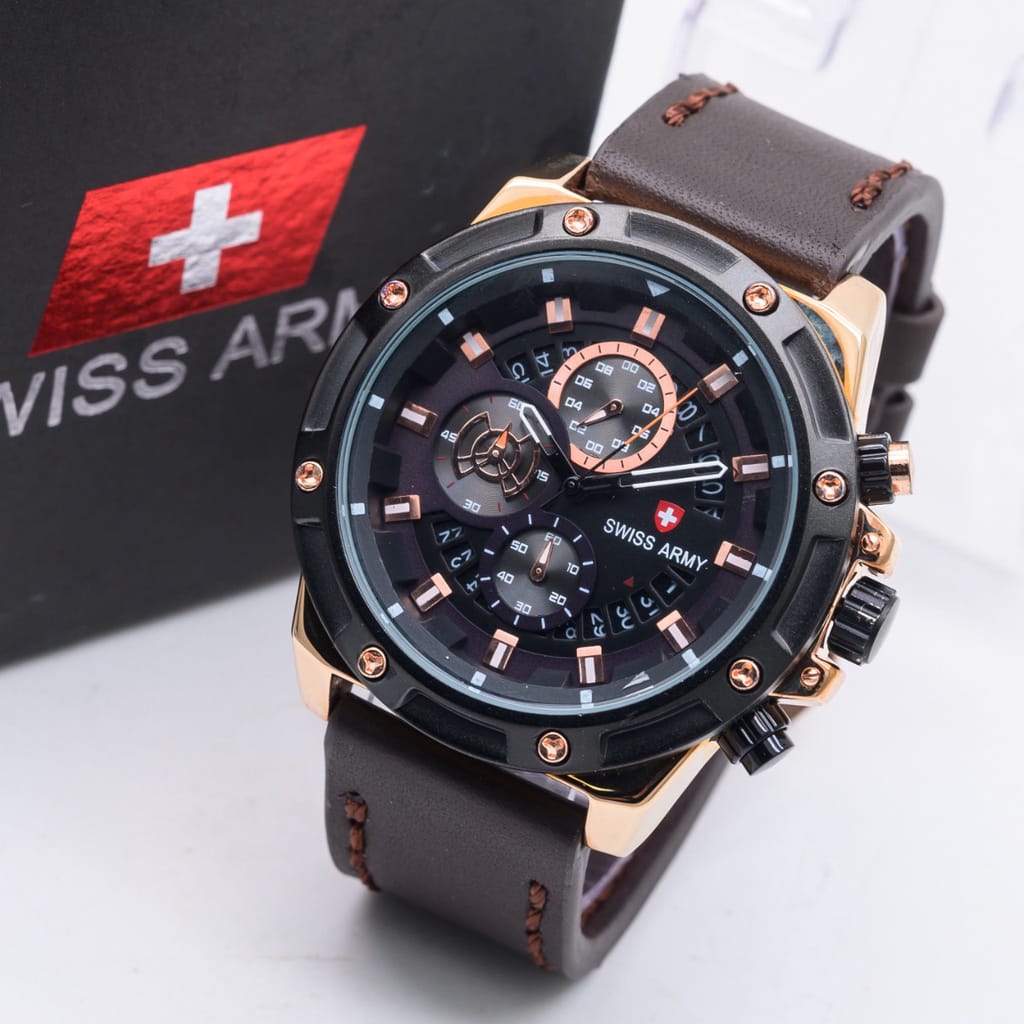 Grosiran Jam Tangan Swiss Army Chronograph TL3161 + Kulit Tanggal Aktif - Jam Tangan Pria Include Box Original