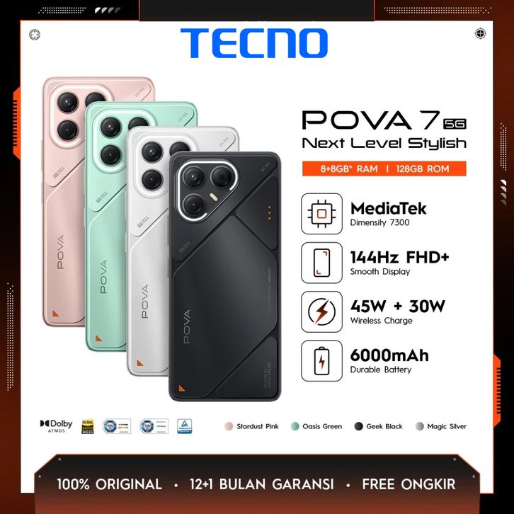 TECNO POVA 7 5G 8/256GB & POVA 7 8/256GB - GARANSI RESMI 1 TAHUN TECNO INDONESIA