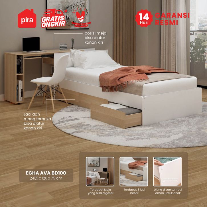 PIRA - EGHA BD100 Dipan / Tempat Tidur dengan Meja Sliding