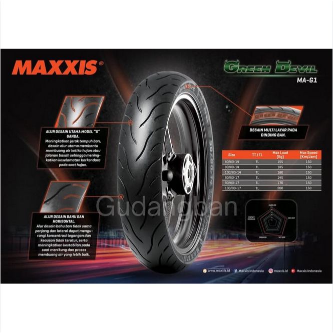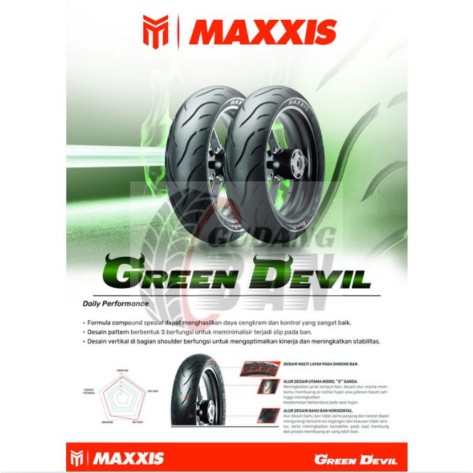 (RING 17) Maxxis Green Devil 130 / 70 - 17 MA-G1 Ban Motor Ninja CBR 150CC Baru TUBELESS FREE PENTIL