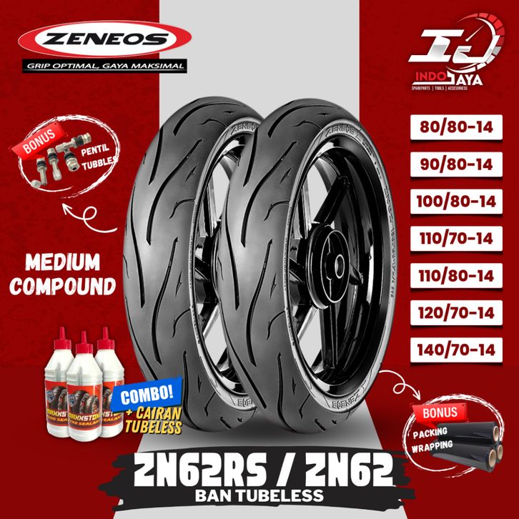 BAN LUAR TUBELESS ZENEOS ZN62 (80/80 - 90/80 - 100/80 - 110/70 - 110/80 - 120/70 - 140/70) BAN MATIC / BAN DEPAN