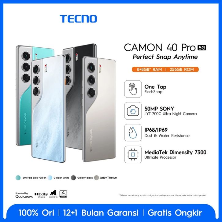 TECNO CAMON 40 Pro 5G 12/256GB & CAMON 40 8/256GB - Garansi Resmi 1 Tahun