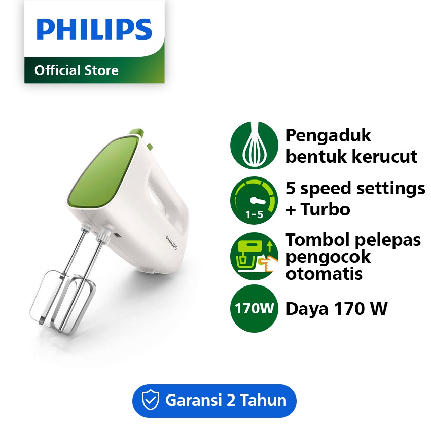 PHILIPS DAILY COLLECTION MIXER HR1552/40 - 170W - PENGOCOK TELUR, PENGOCOK ADONAN KUE, GREEN, HIJAU
