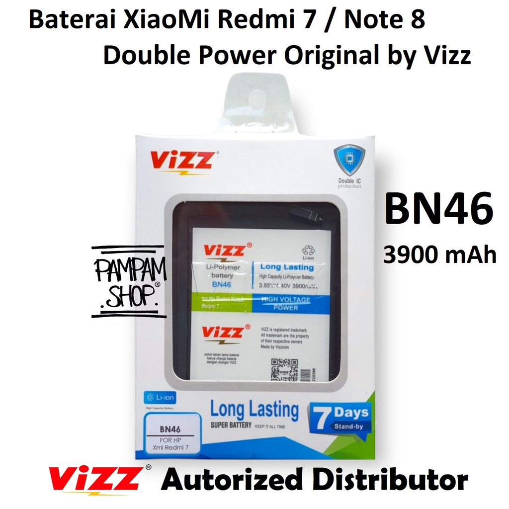 BATERAI VIZZ DOUBLE POWER ORIGINAL XIAOMI REDMI 7 NOTE 8 BN46 BATRE BATRAI BATTERY ORI HP HANDPHONE BN 46