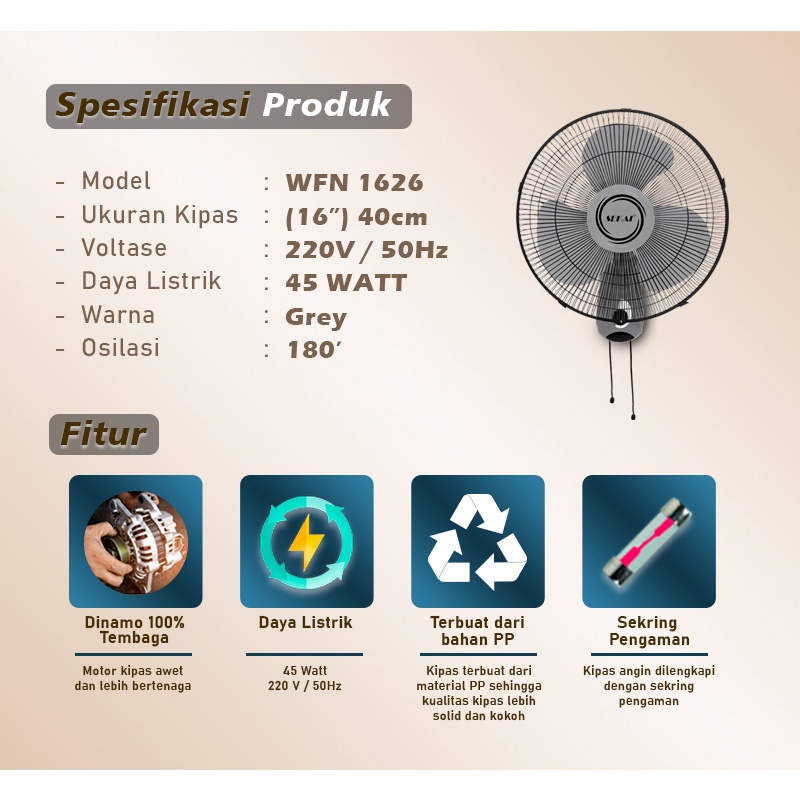 Kipas Angin Dinding SEKAI WFN-1626 Wall Fan 16 Inch Original Official Store