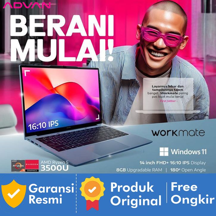 ADVAN Workmate Intel Core i3-1215U | AMD Ryzen 5 3500U 8GB/256GB 14" Inch FHD+ 16:10 IPS WiFi 5 Upgradable Free WIndows