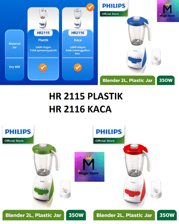 BLENDER PHILIPS HR 2116 / 2115 KACA DAN PLASTIK 2 L LITER 2in1 GARANSI RESMI PHILIP HR2116 HR2115 HR-2115 HR-2116 PILIP