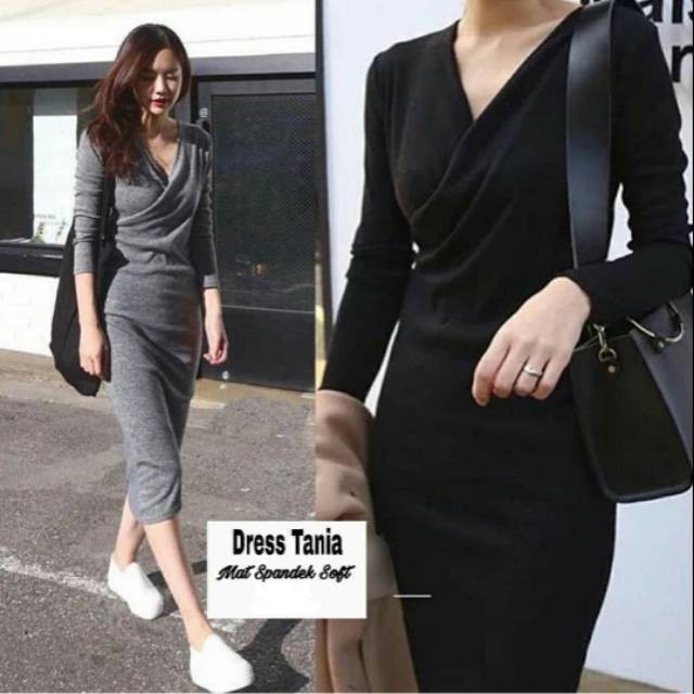 Korean Long Sleeve V-Neck Gaun Wanita Lengan Panjang 868 (XS-XL)