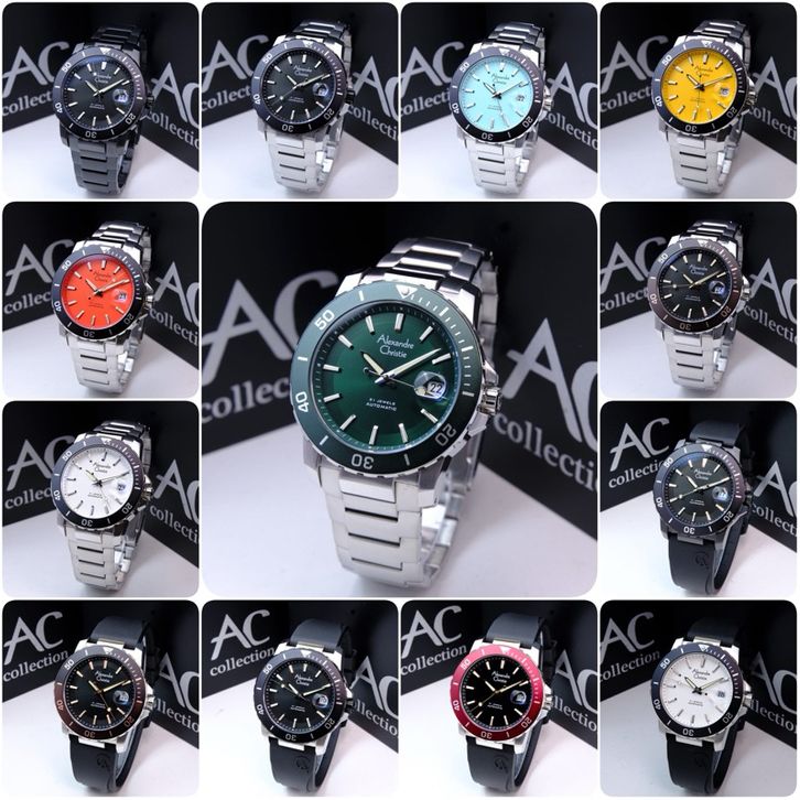 Jam Tangan Alexandre Christie Pria Ac 6141 Silver Green Automatic Rubber Jam Alexandre Christie Ori Garansi Resmi
