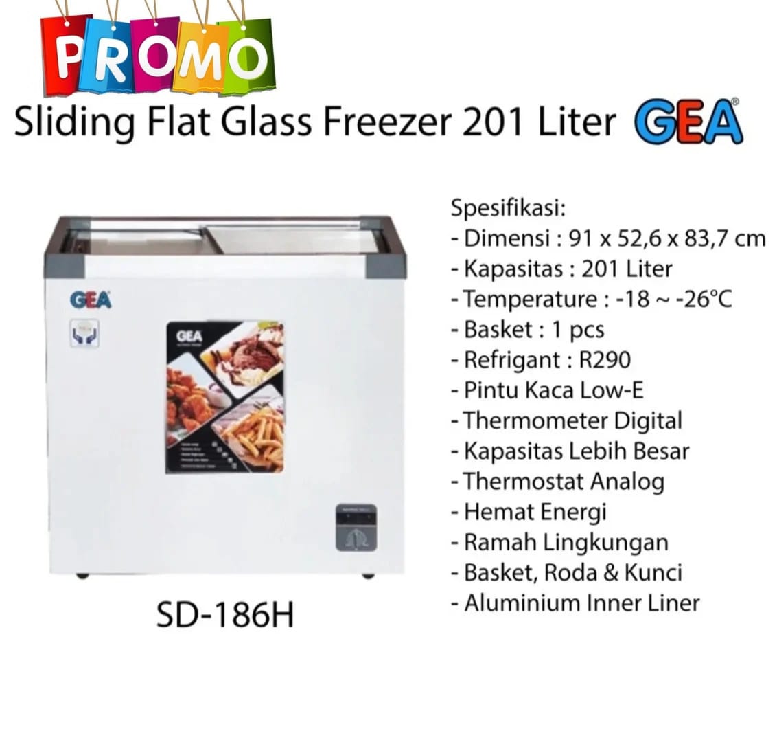 GEA Chest Freezer Sliding SD186- 201liter ONGKIR Area Jabodetabek