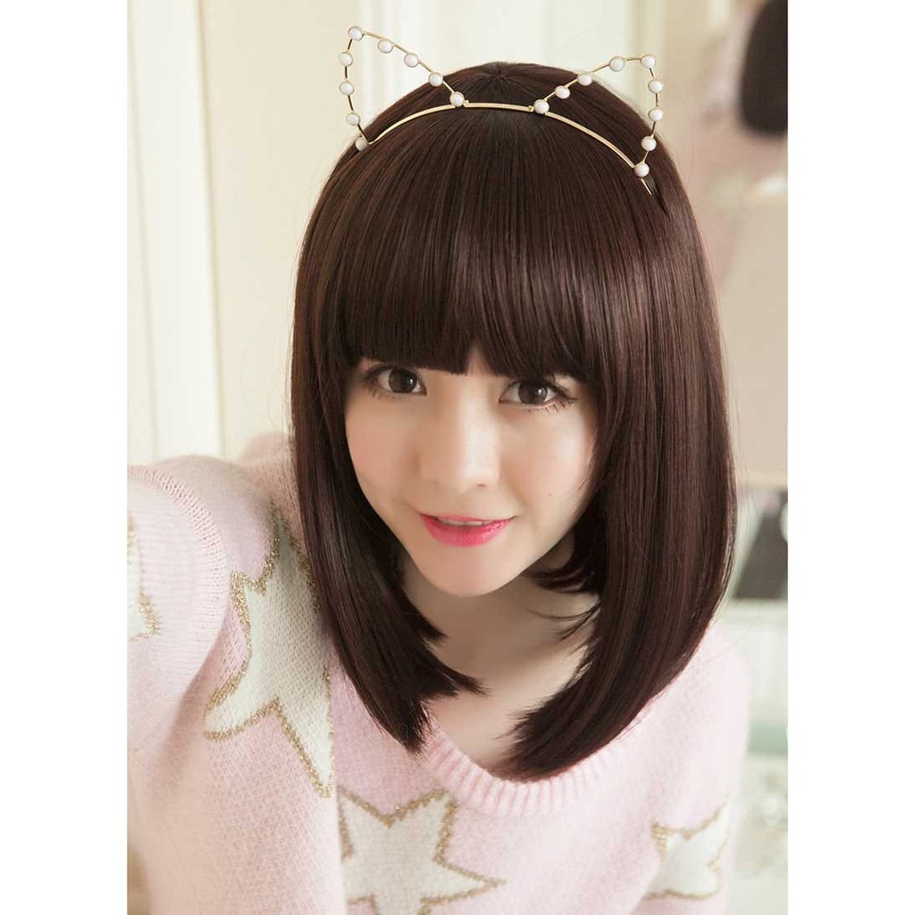 FREE ONGKIR WIG WANITA BERPONI SEBAHU RAMBUT PALSU COSPLAY LURUS TAHAN LAMA