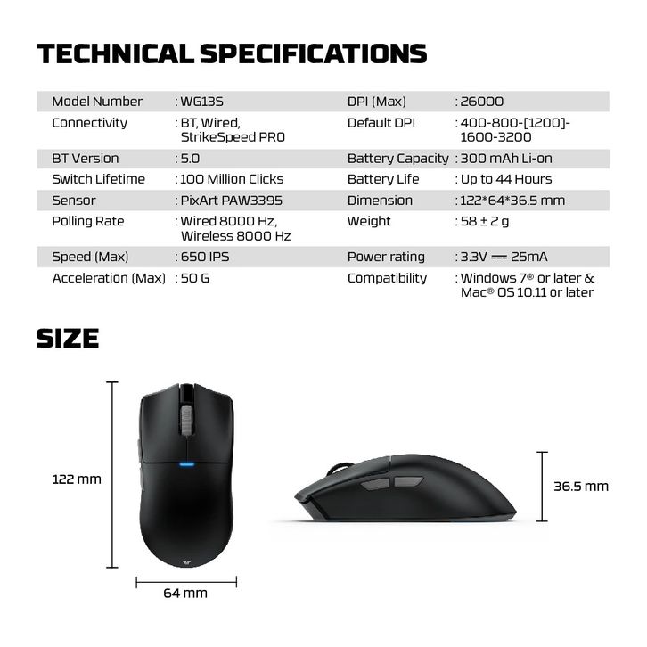 Fantech TANTO S 8K / TANTO 1K - WG13S WG13 & TANTO E - WG13E Mouse Gaming Wireless Rechargeable PIXART 3395 - BERGARANSI