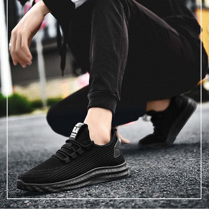Sepatu Sneakers Pria Casual Murah Lentur Sport Fashion Hitam MR109