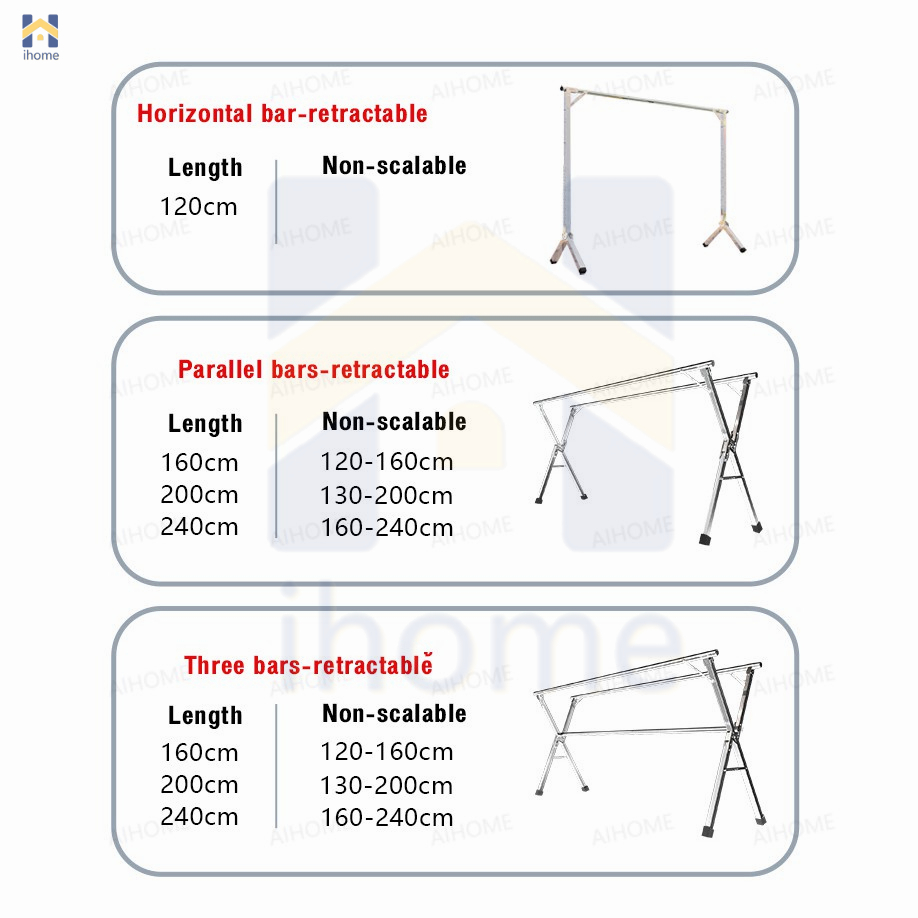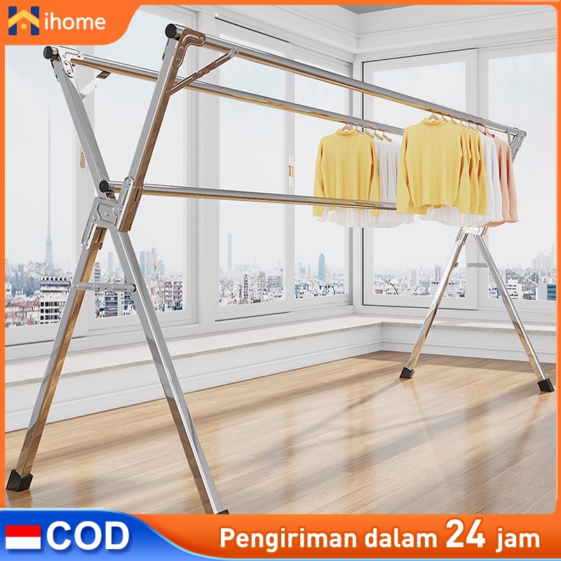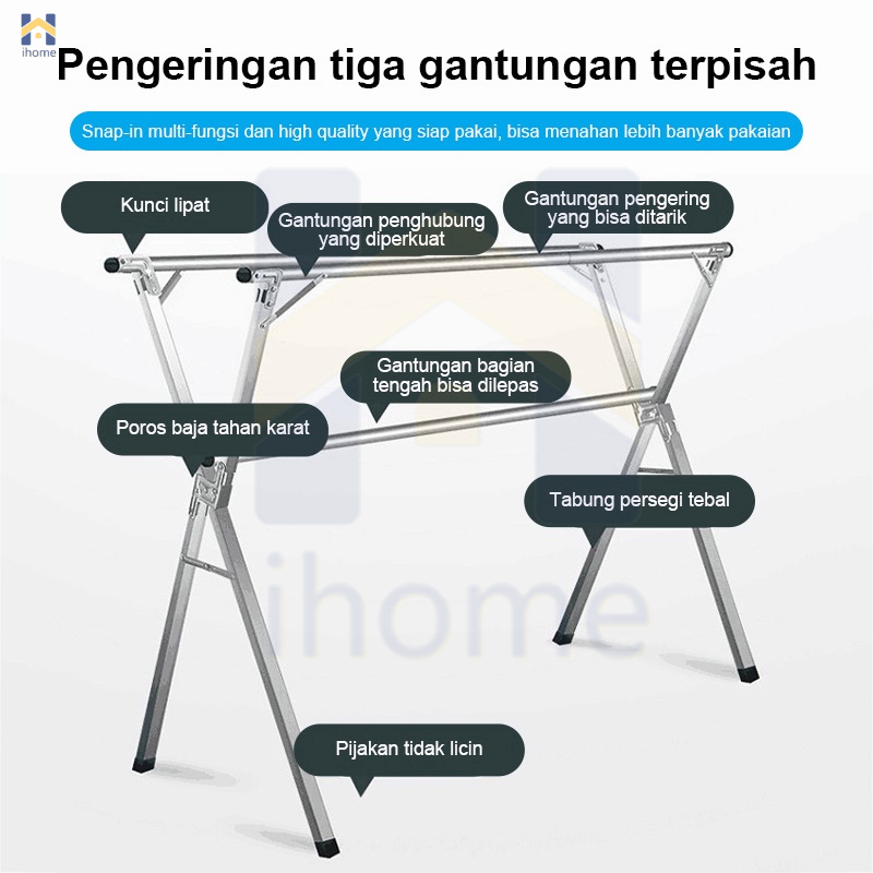 DISCOUNT Ihome Jemuran Baju Jemuran Pakaian 240cm Gantungan baju Tiang ganda Dapat Dilipat / Dapat Diperpanjang Stainles