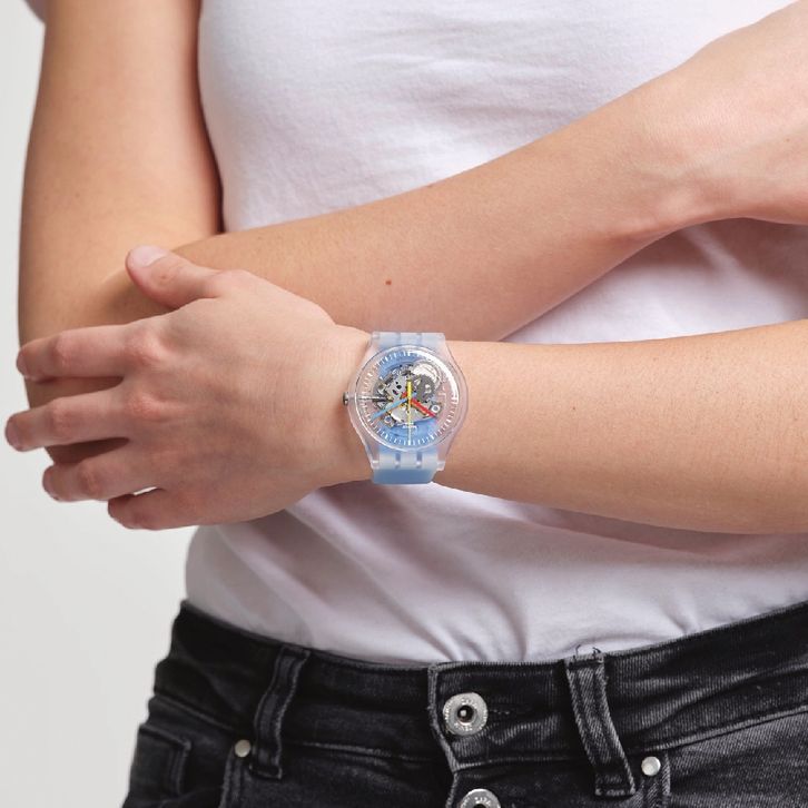 Original 100%!! Swatch Jam Tangan Unisex SUOK56 CLEARLY BLUE STRIPED Garansi Resmi 2 Tahun