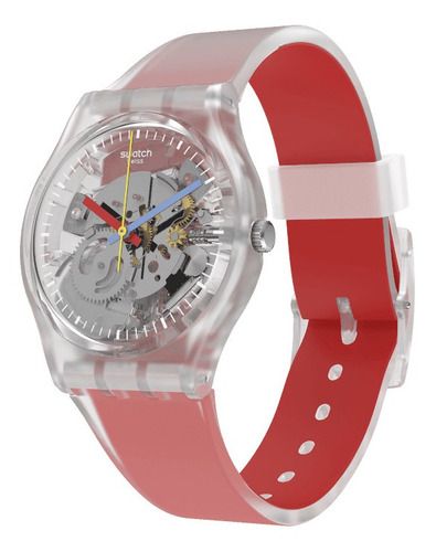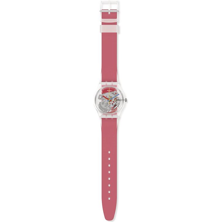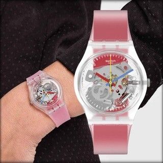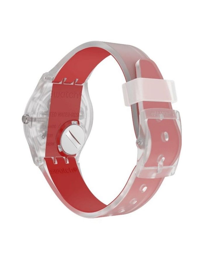 Swatch Jam Tangan Wanita Karet GE92 CLEARLY RED STRIPED Original