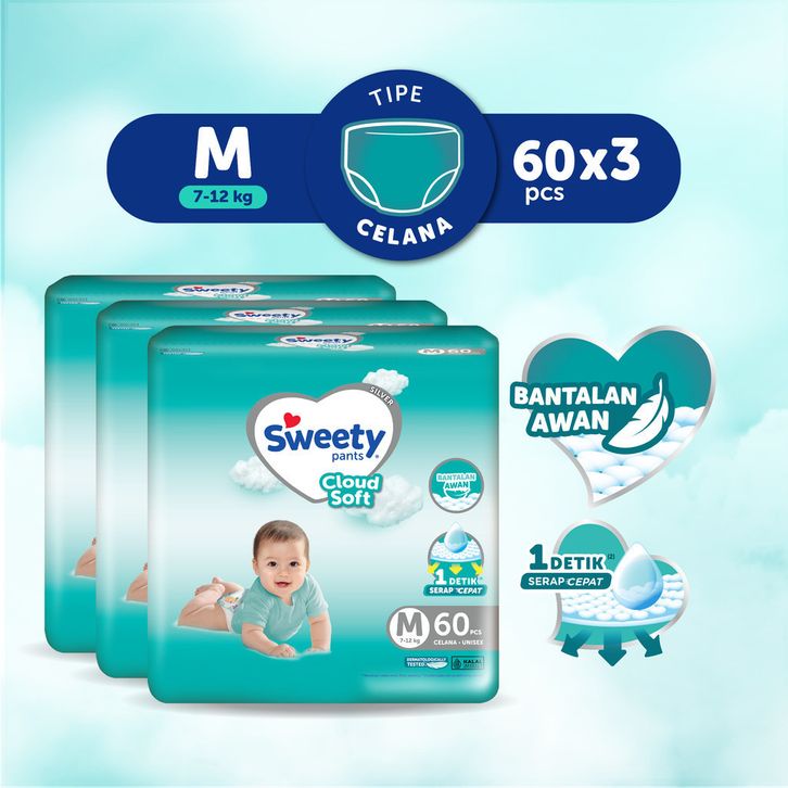 PAKET 3 BALL Sweety Slver Pants Cloud Soft M 60s x 3 Popok Celana Baby Diapers