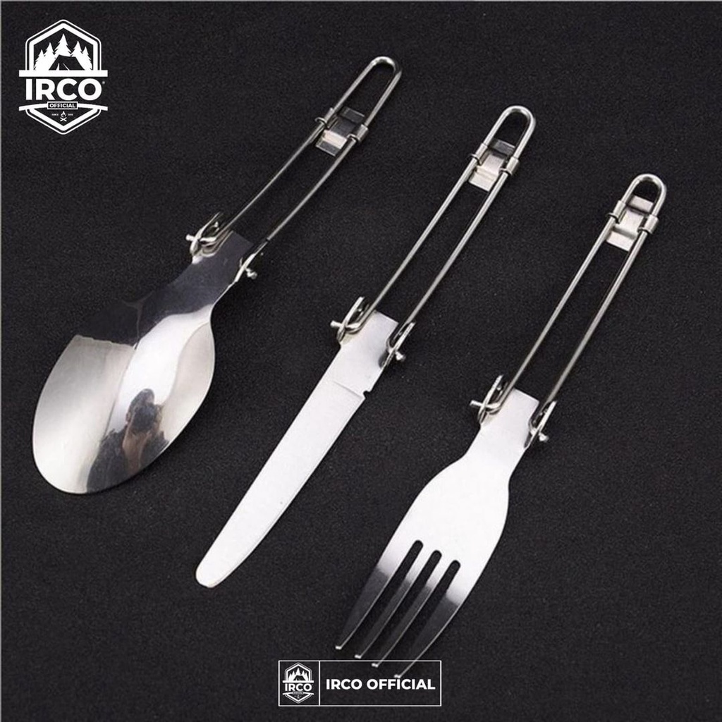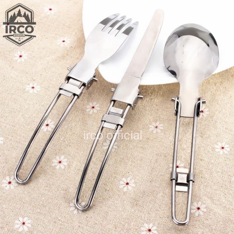ALAT MAKAN CAMPING SET SENDOK GARPU STAINLESS MURAH - SENDOK GARPU LIPAT PORTABLE TRAVEL SET