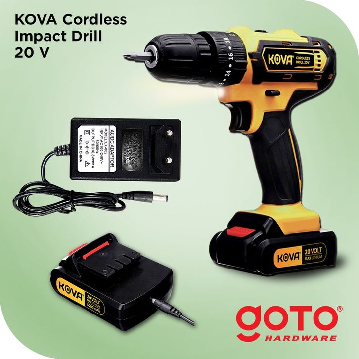 Goto Kova Cordless Impact Drill 20 V Bor Baterai Tembok