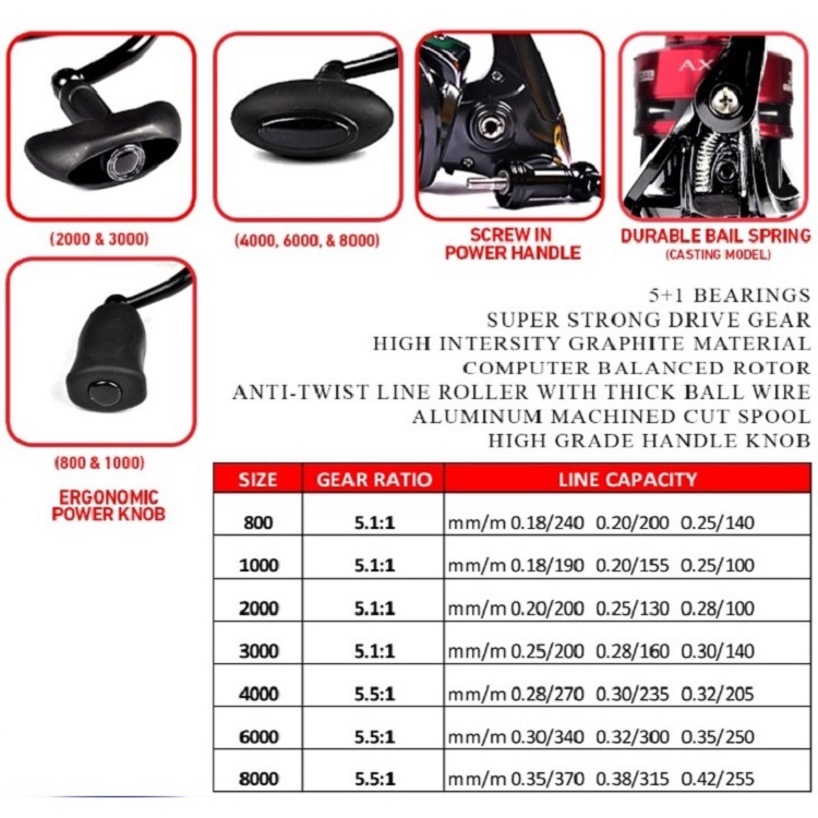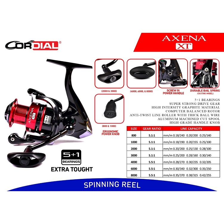 Reel Cordial AXENA XT | 800 - 8000 | Power Handle | Bonus Senar CORDIAL GOLDEN STAR