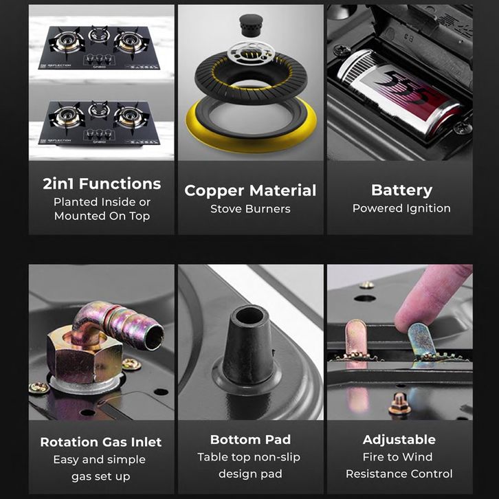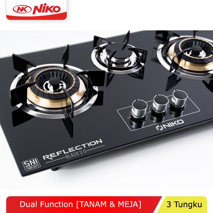 Kompor Gas 3 Tungku Kaca - Niko Reflection Black 3.0 - Garansi Resmi.