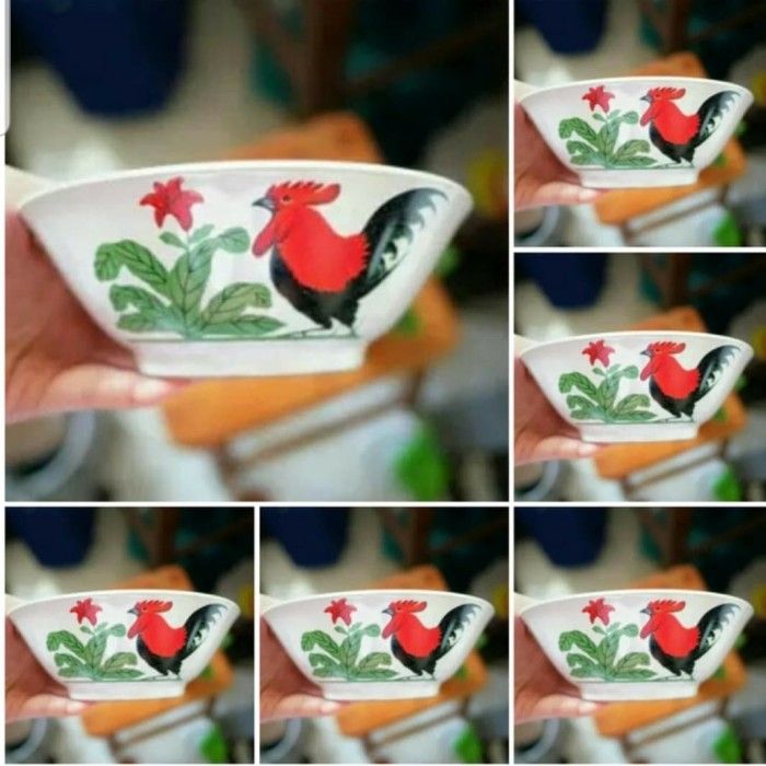 1 Set Isi 6 Pcs Mangkok Ayam Jago/Mangkok Bakmi/Mangkok Ayam/Mangkok