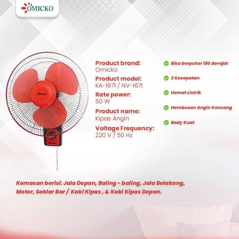 KIPAS ANGIN DINDING YASAKA & OMICKO 12 14 16 inch 3 SPEED KECEPATAN BISA DI ATUR WALL FAN DINGDING WALLFAN 12in 16in