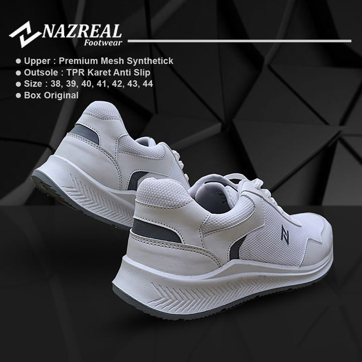 LUCKY WHITE | Sairashoes - Naz | Sepatu Sneakers Pria Putih Casual Sport Running Shoes ORIGINAL