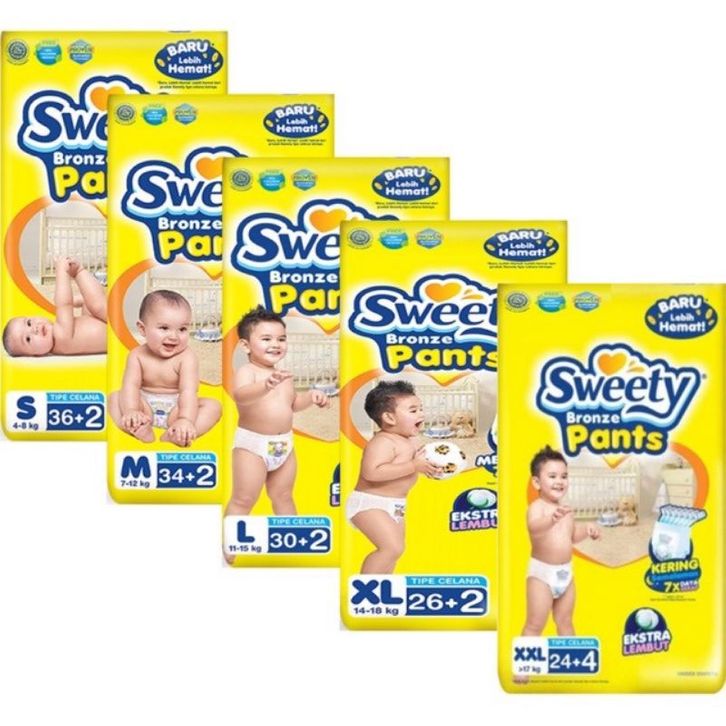 Popok Bayi Sweety Bronze Pants S36+2 M34+2 L30+2 XL26+2 Tipe Celana