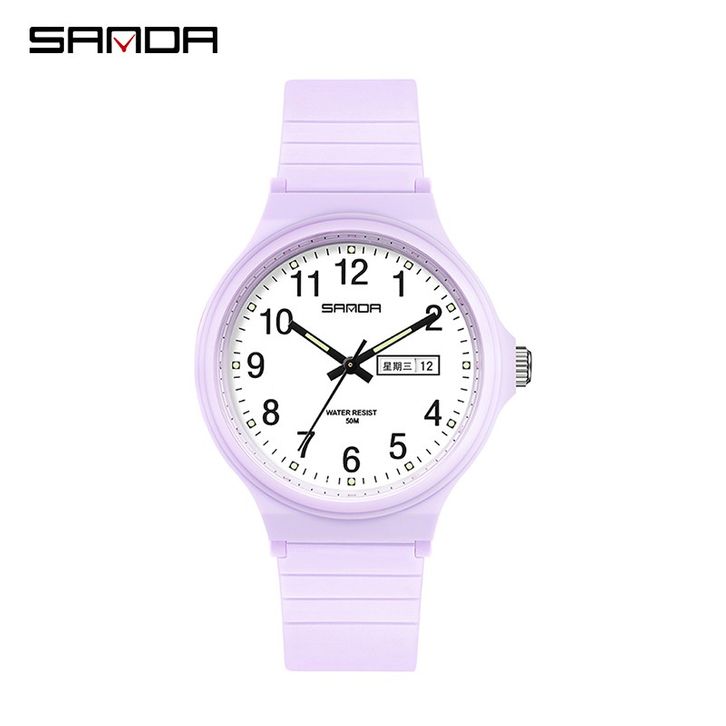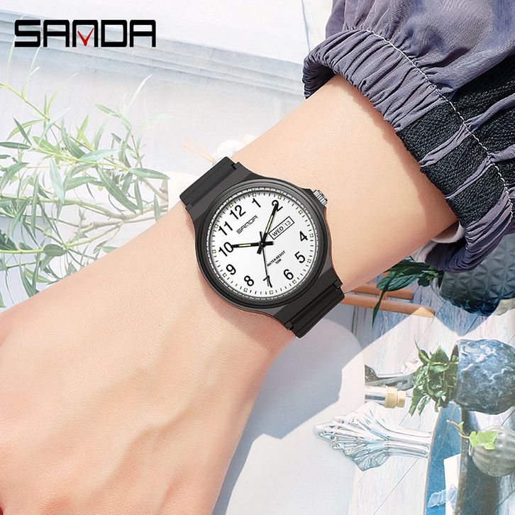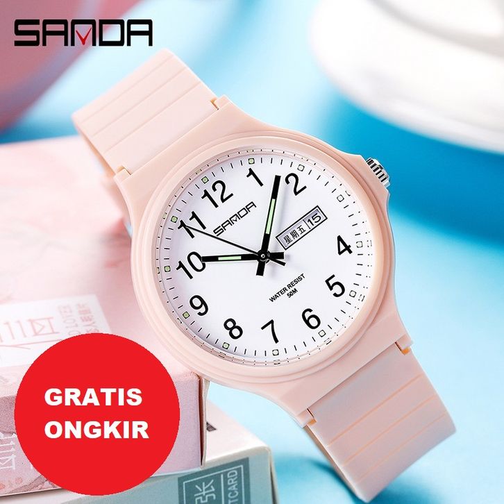 Jam Tangan Wanita Pria SANDA 6060 Analog Sport Tali Rubber Luminous CURRENOS