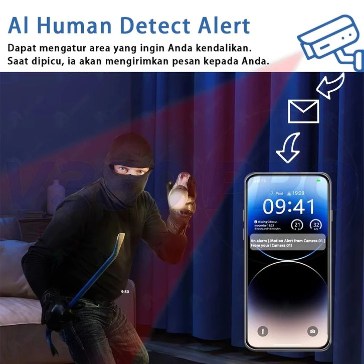 CAMERA CCTV 1 SET V380 PRO KAMERA PENGELIHATAN MALAM PENUH WARNA OUTDOOR TAHAN AIR IP65 ALARM PINTAR