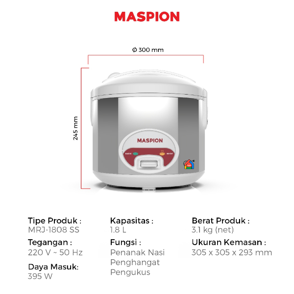 Magic Com Maspion MRJ-1808 SS / Rice Cooker Maspion MRJ808SS (1,8 Liter)