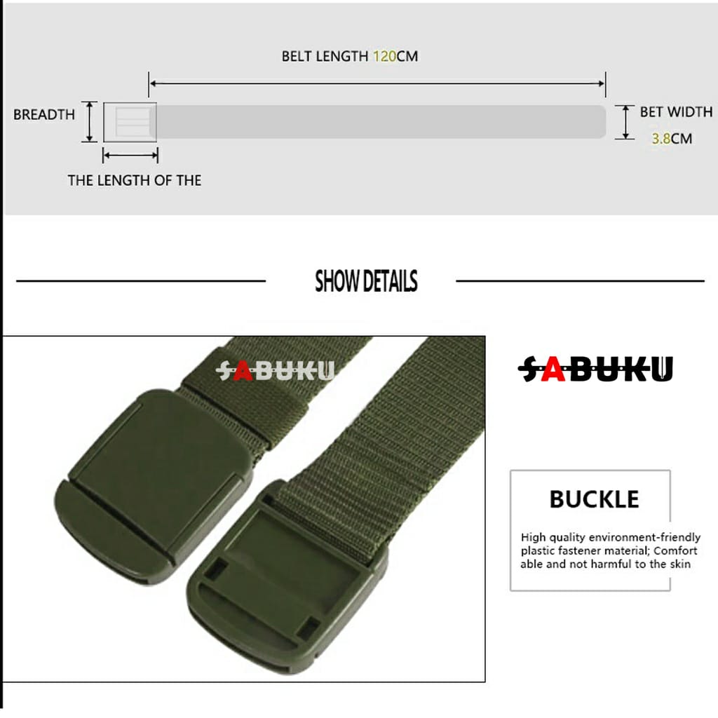 Ikat Pinggang Pria Nylon Canvas Gesper Tactical Sabuk Anti Metal Detector - 116