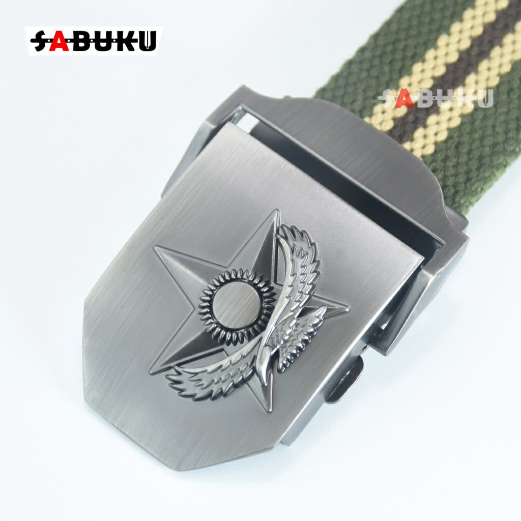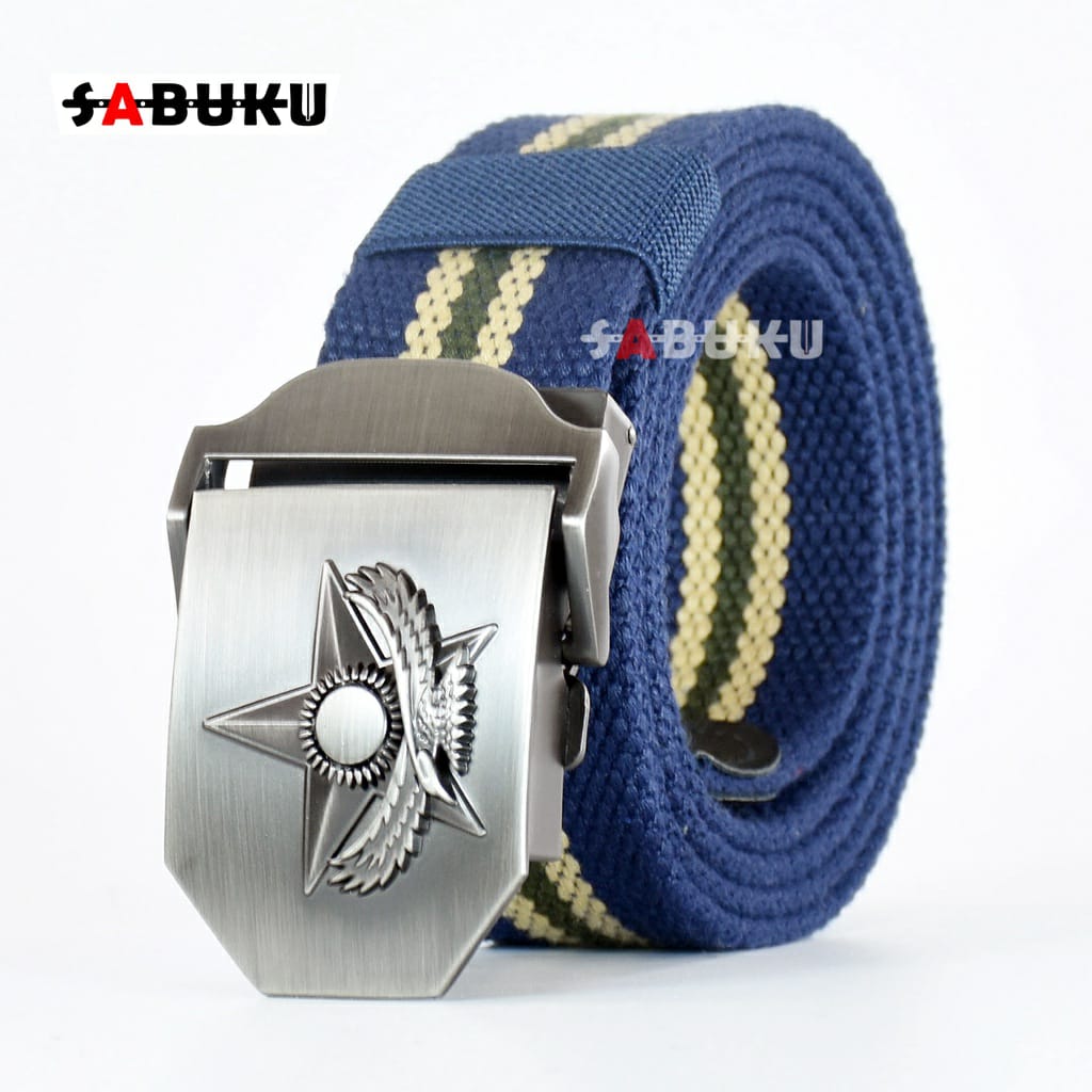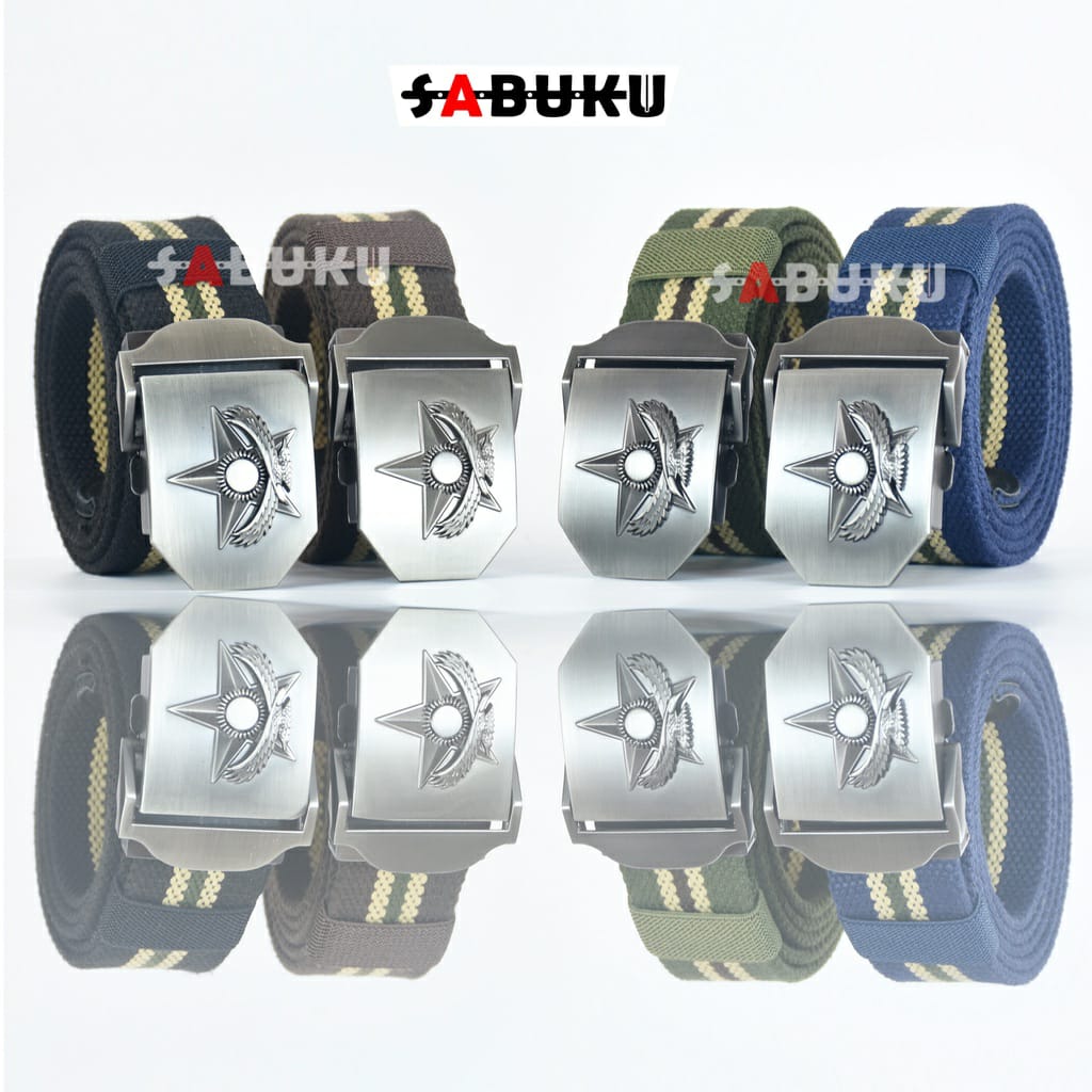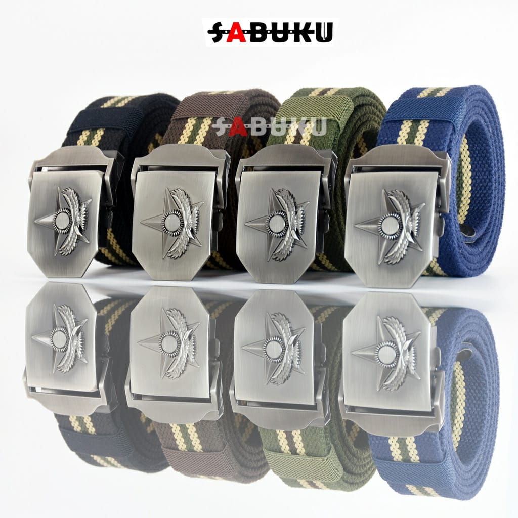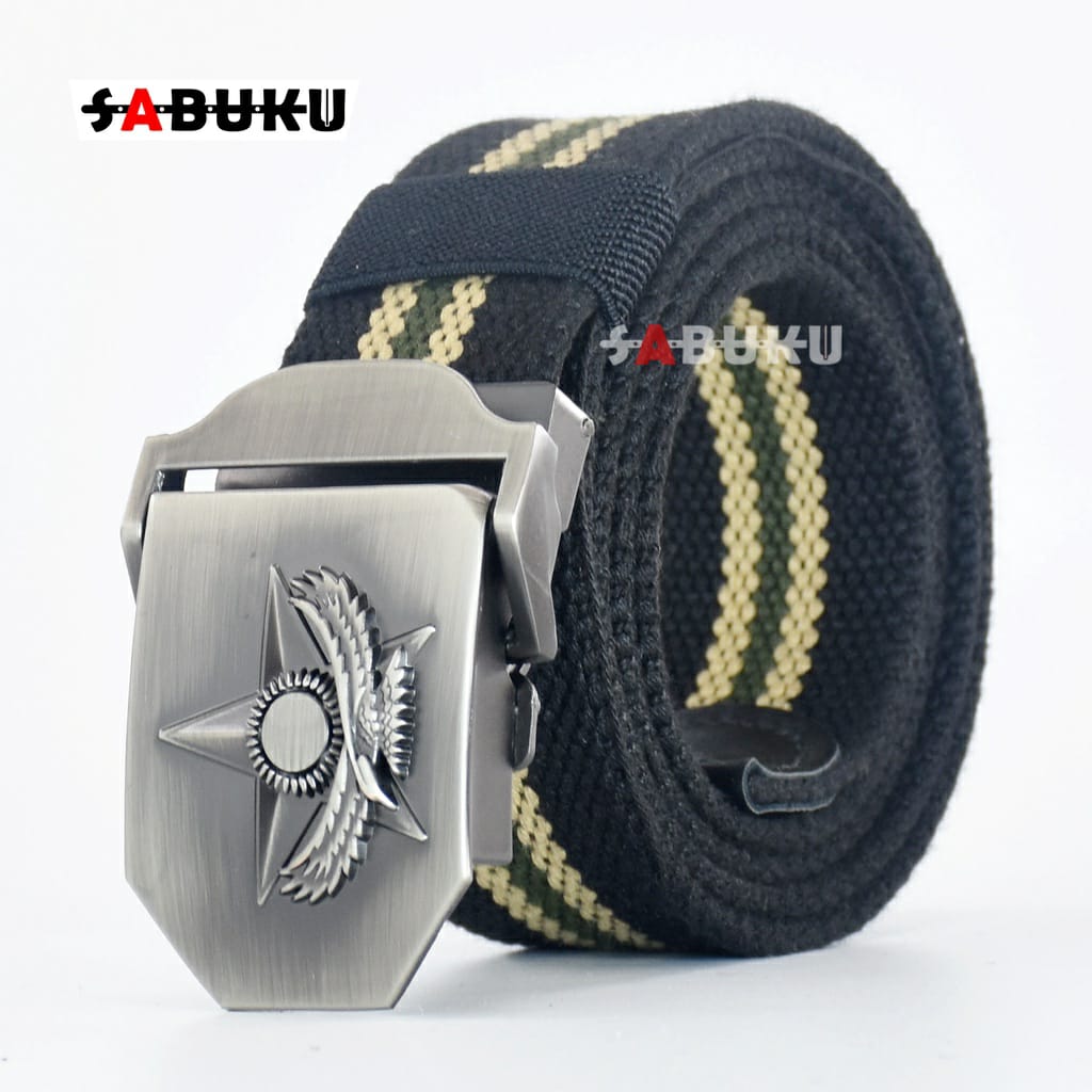Ikat Pinggang Gesper Kanvas Sabuk Pria Kepala Besi Tactical Model Jepit Fashion Men Belt - 156
