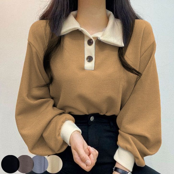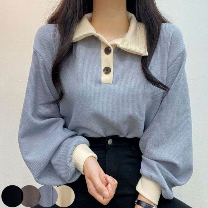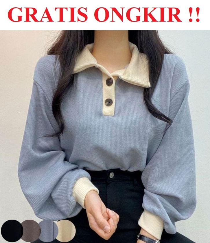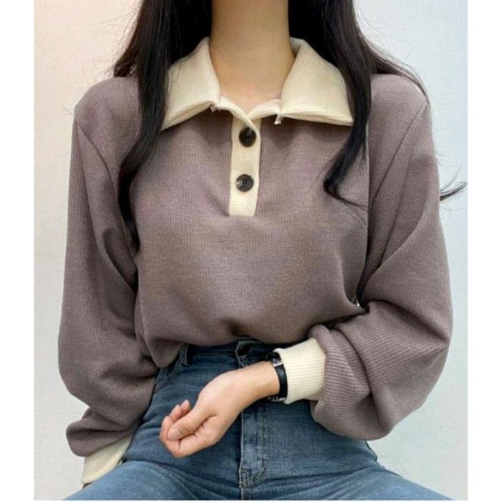 Sweater Wanita Oversize | Collar Girl Sweater Kancing Polos Kerah | Sweater Size M.L.XL | Korean Style