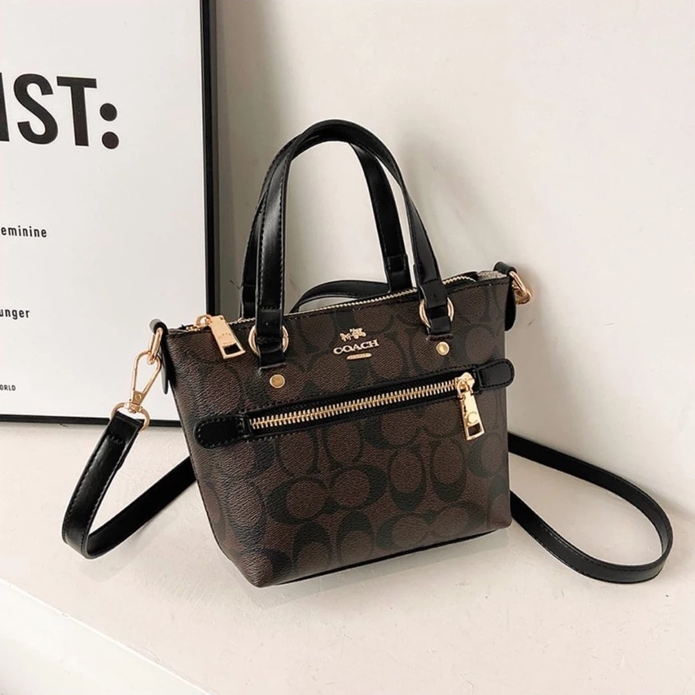 TAS WANITA COACH MIONI TOTE BAG 7363 BLACK - FREE COVER BAGS + FULL SET