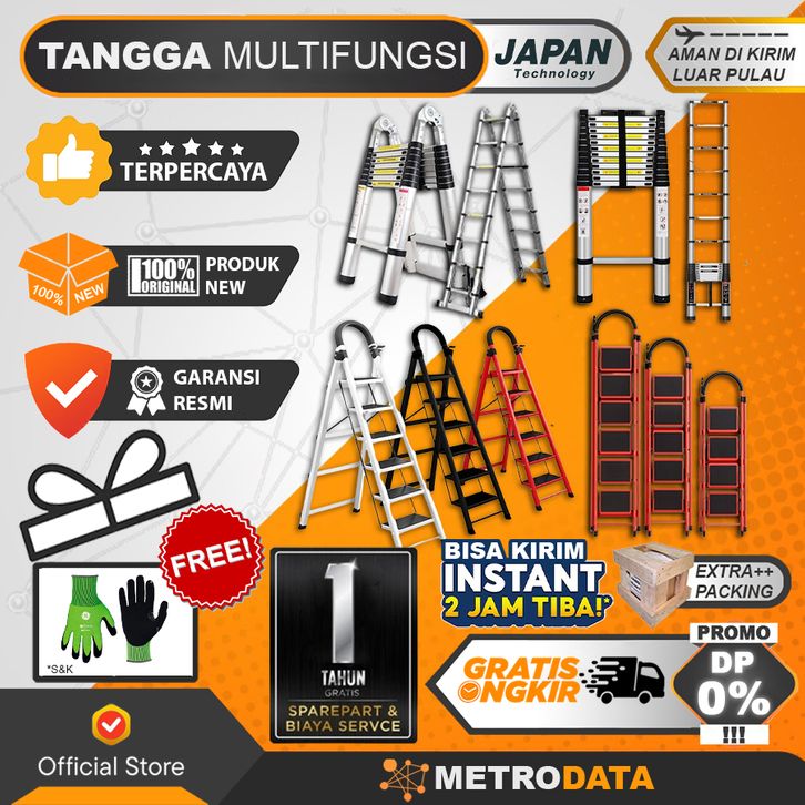 3,8m (DOUBLE), 4,4m (DOUBLE), 5m (DOUBLE), 5,6m (DOUBLE), 6,2m (DOUBLE), 6,4m (DOUBLE), 8m (DOUBLE), 3,8m (SINGLE), 4,4m (SINGLE), 5,4m (SINGLE), 6,2m (SINGLE), 8m (SINGLE), 2,7m (SINGLE), 5,1m (SINGLE), 7m (SINGLE), 3,4m (DOUBLE), 3,4m (SINGLE), 2 STEP LIPAT 88cm, 3 STEP LIPAT 117cm, 4 STEP LIPAT 145cm, 5 STEP LIPAT 164cm, 6 STEP LIPAT 185cm, 7 STEP LIPAT 205cm, 8 STEP LIPAT 220cm
