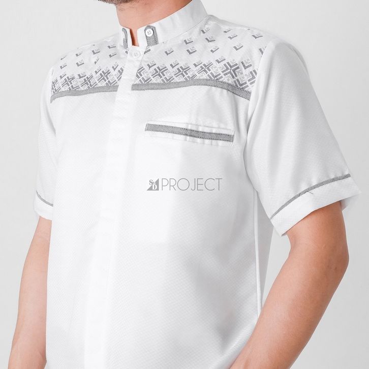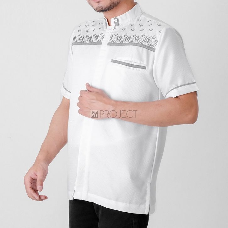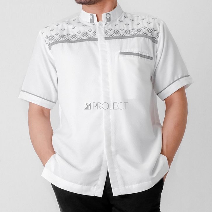 Baju Koko Poli Katun Bordir Lengan Pendek Ukuran S M L XL XXL 3XL 4XL - Putih Tulang